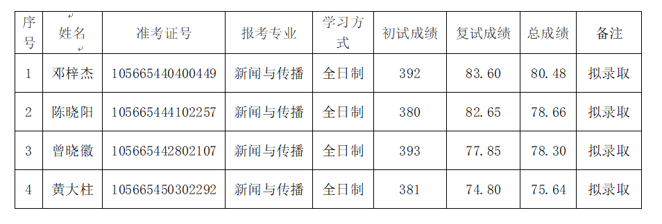根据学校及我院研究生招生工作的相关文件精神和要求,经学院研究生招生录取工作领导小组审定,将我院2025年硕士研究生第一志愿考生拟录取名单进行公示。