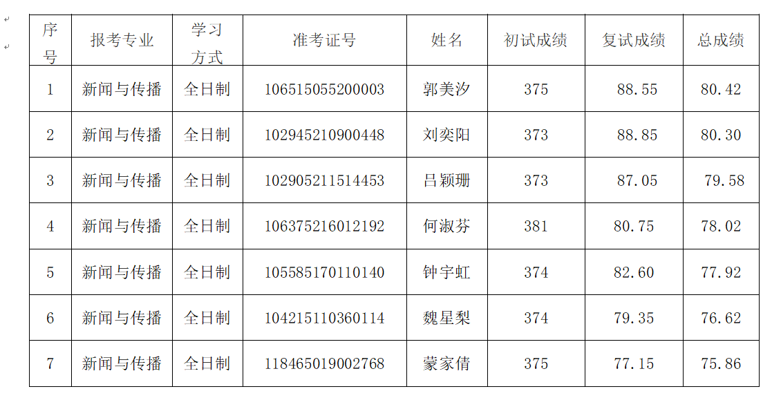 现将我院2025年硕士研究生招生调剂复试结果予以公示(按照最终得分进行排名)。