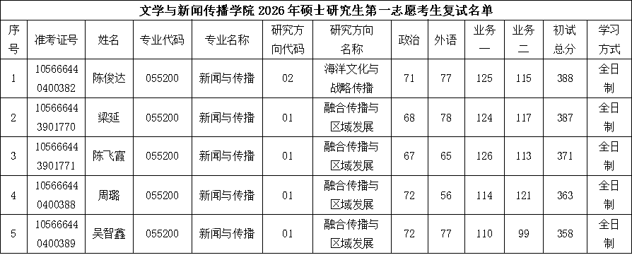 复试名单详见下表:
