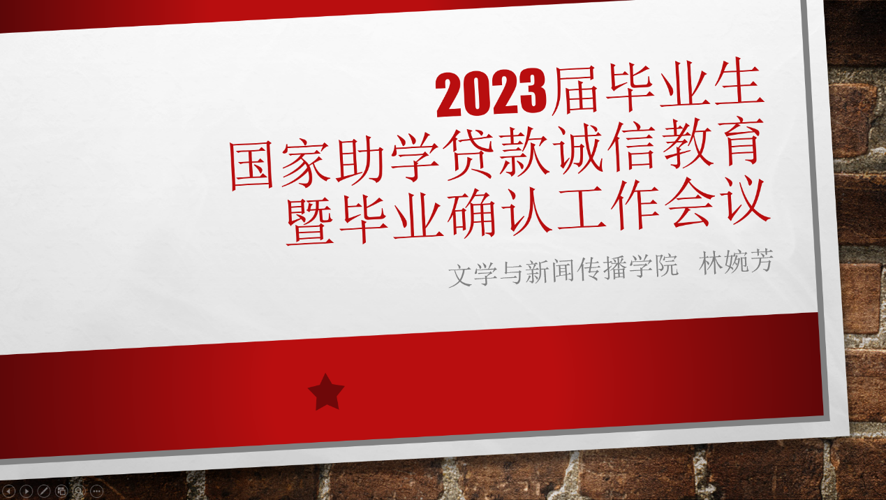 5月24日晚上,william威廉中文通过腾讯会议召开国家助学贷款诚信教育暨2023届毕业确认会议。本次会议由学院助学贷款工作负责人林婉芳老师主讲,学院2023届全体贷款毕业生参会。