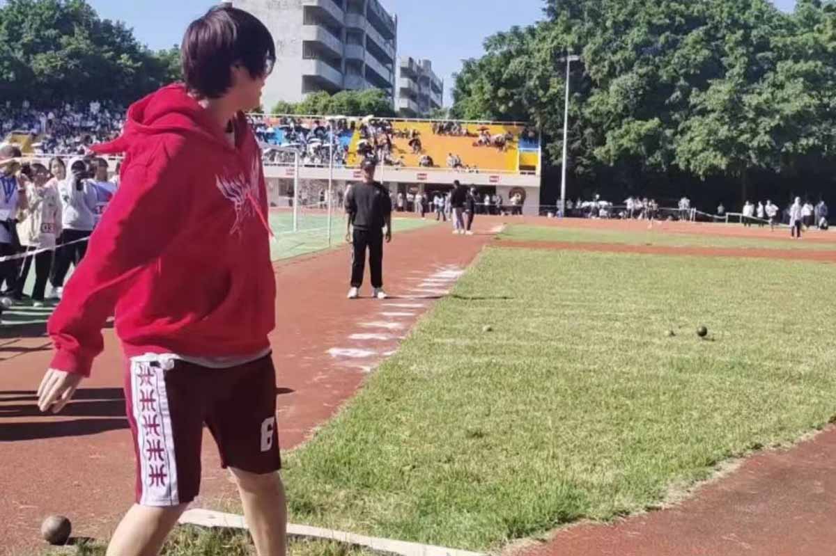 陈汉明参加教工男子乙组铅球项目获得第二名