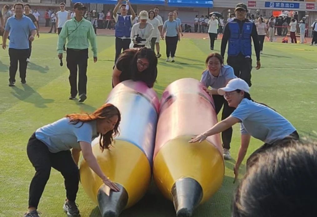 教工们参加趣味集体项目“快乐铅笔”