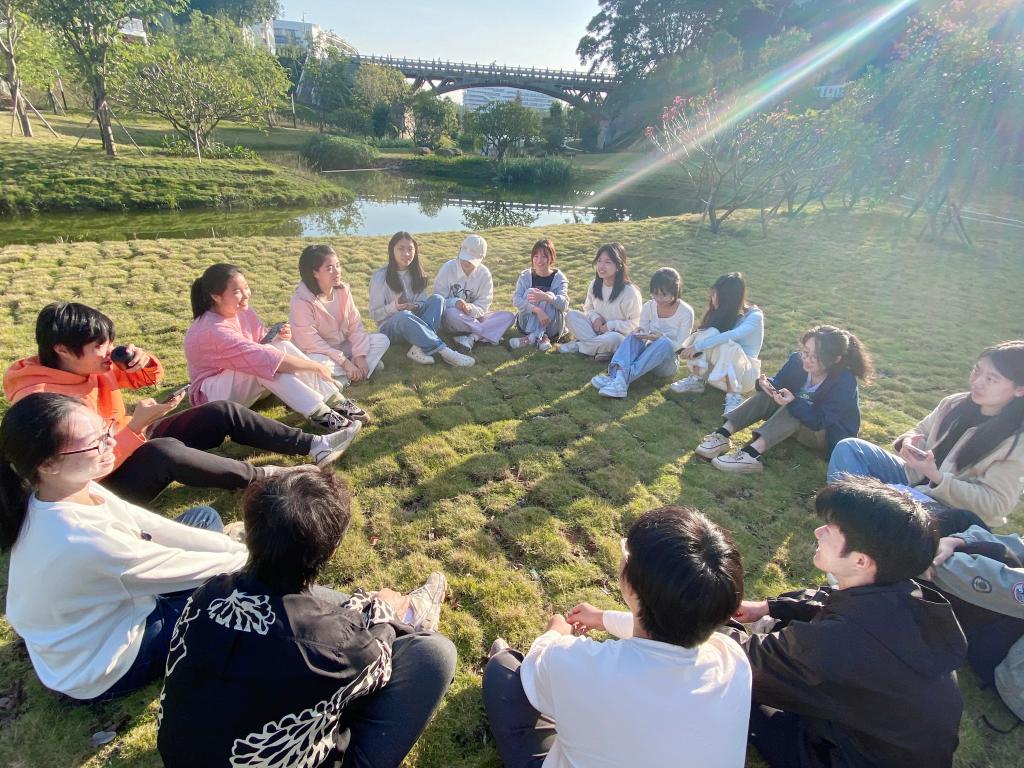 为了让学生们更好地放松身心,活动最后还安排了击鼓传花放松游戏。在夕阳西下的美景和轻松愉快的音乐中,学生们积极参与游戏,释放了内心的压力,同时也加深了彼此之间的友谊和信任。