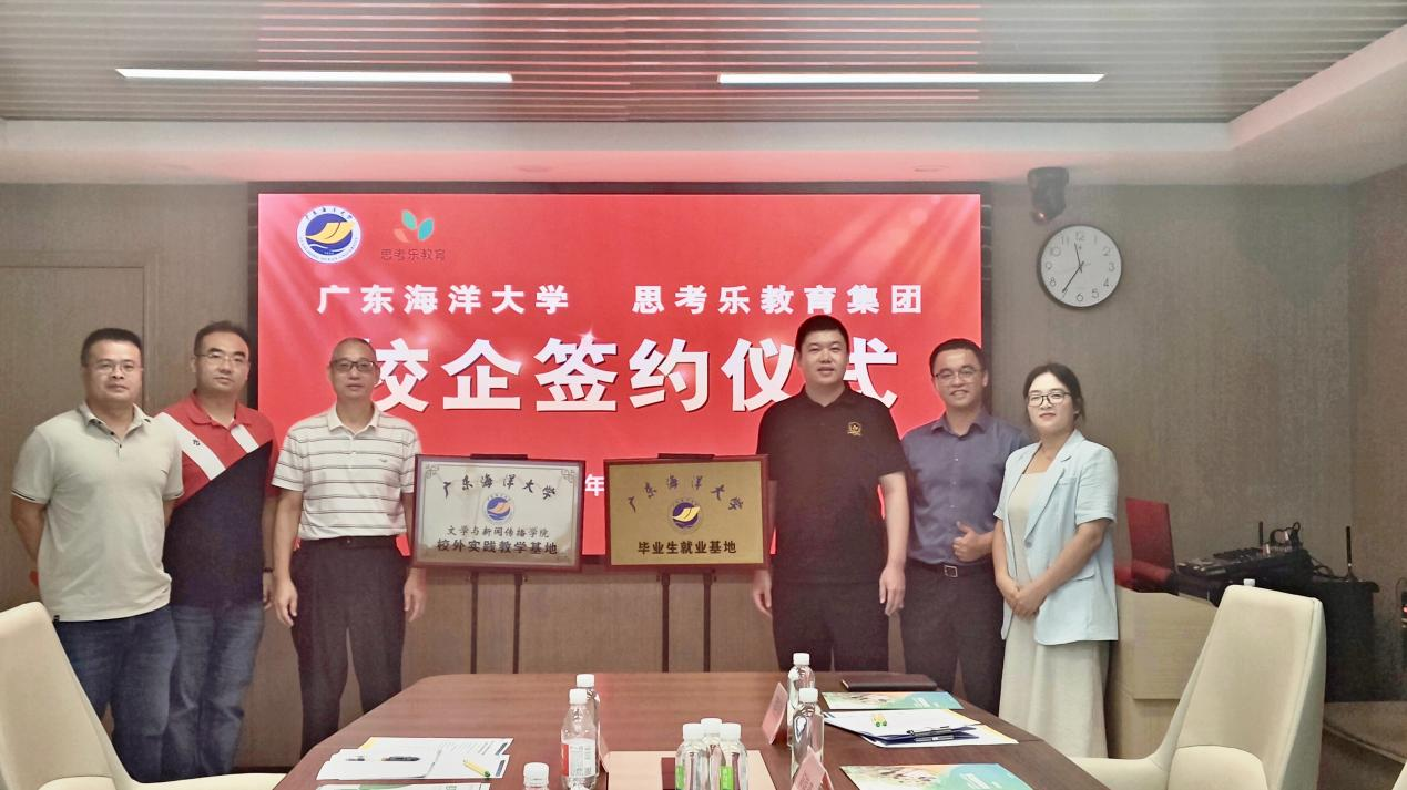 威吉瑞(广东)企业服务集团有限公司为校友企业,通过洽谈,学院领导与该司负责人罗祖威校友,就共建实习就业基地达成了初步合作意向。深圳思考乐教育集团此前已访问文传学院,双方已就共建实习就业基地达成协议,学院领导此次回访,与对方举行了共建教学就业基地协议签署仪式和基地揭牌仪式。
