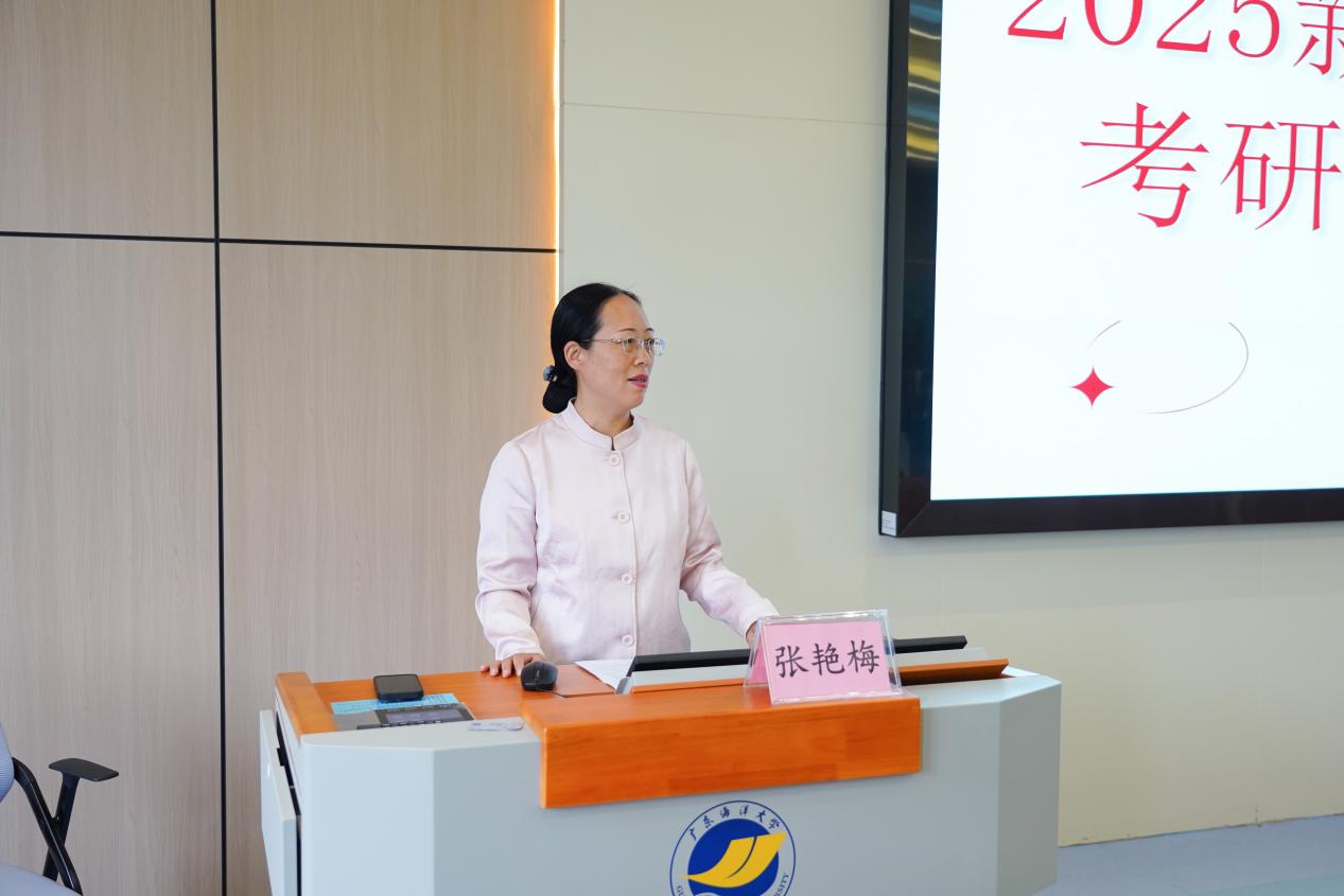 张艳梅代表学院向辛苦备战的考研学生致以亲切慰问。她高度评价同学们选择考研对优良学风塑造、就业质量提升及个人意志锤炼的深远意义。她指出,考研既是学识与能力的较量,更是对心态与韧性的考验。能完整走完全程的同学,已是最大的赢家。无论结果如何,都应为自己一路坚持而骄傲。她勉励大家放下包袱、放平心态,以从容自信的姿态迎接考试。