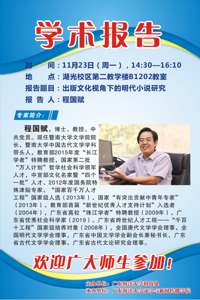 上一条:暨南大学程国赋教授应邀来我院作学术报告