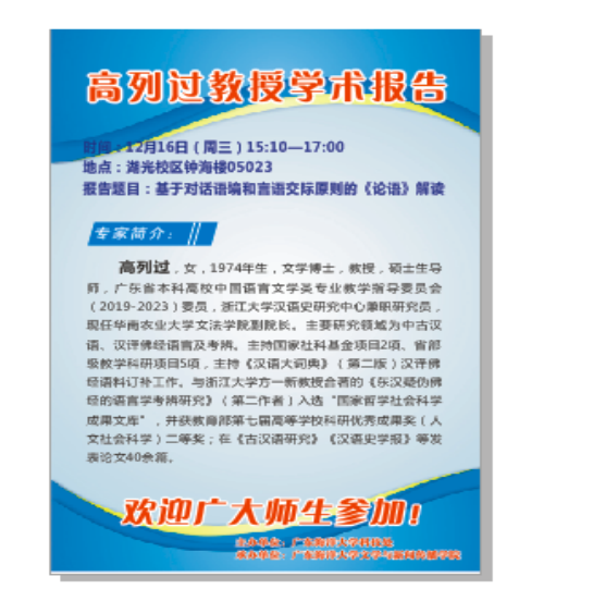 上一条:华南农大高列过教授应邀来我院作学术报告