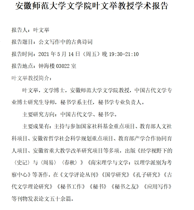 上一条:安徽师范大学叶文举教授应邀到文传学院作学术报告