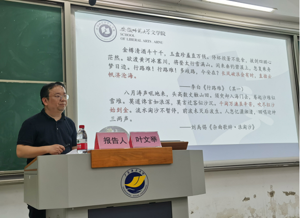 5月14日晚,应WilliamHill中文文传学院及秘书学专业邀请,安徽师范大学文学院博士生导师、秘书学专业负责人叶文举教授在钟海楼03022报告厅为文传学院师生作了一场精彩的学术报告:“公文写作中的古典诗词”。学术报告会由文传学院刘刚副院长主持,文传学院院长孙长军教授、秘书学专业汪东发教授、朱欣文副教授及部分青年教师和160余名学生参加了报告会。