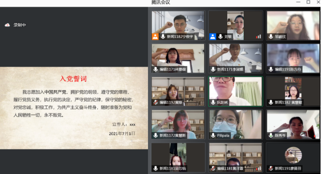 7月1日,中国共产党成立一百周年之际,william威廉中文学生第一党支部通过腾讯会议线上召开了党史学习专题组织生活会暨毕业生党员教育大会。会议由党支部书记刘敏老师主持,支部全体党员参加。