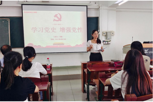 2021年4月21日下午,文传学院学生第一党支部在主楼705开展“学习党史,增强党性”主题党课活动。会议由党支部书记刘敏老师主持,在校的支部全体党员参加。